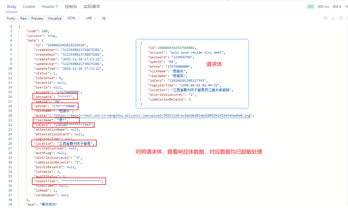 Date字段通过Jackson序列化器脱敏 → 返回脱敏后数据