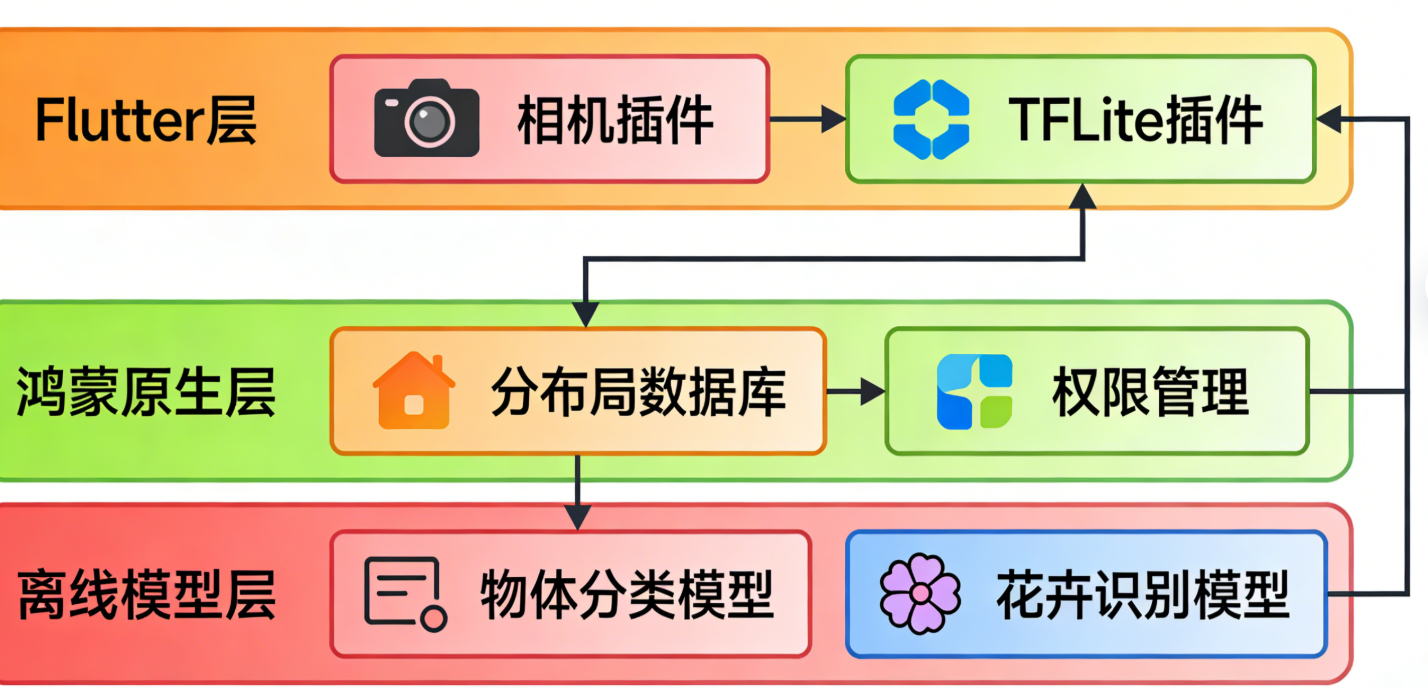 本文详细介绍了鸿蒙 + Flutter 混合开发实现物体分类与花卉识别的完整流程,核心亮点包括: