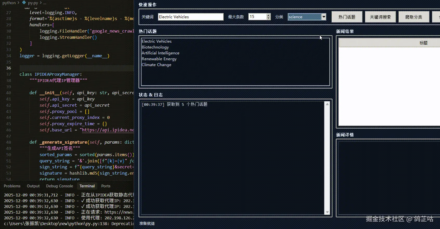 系统通过IPIDEA API实时获取静态代理资源,有效保护隐私安全。多层重试机制(默认3次)与智能延迟策略相结合,确保在复杂网络环境下的稳定运行。