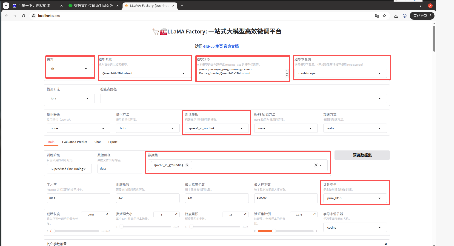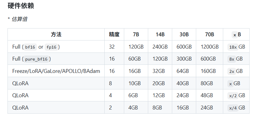 其中计算类型为Pure_bf16更省显存;下面为预估显存需要