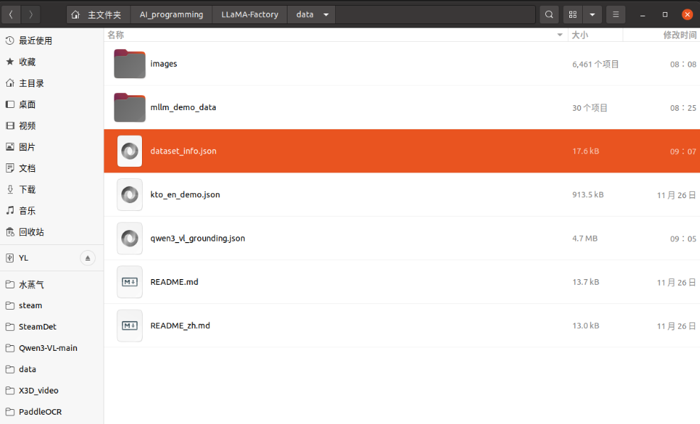 然后将生成的json文件放在LLaMA-Factory/data路径下面