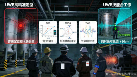 ****(1)核心原理:****基于超宽带脉冲信号,通过到达时间差(TDOA)或双向飞行时间(TWR)计算距离完成定位。