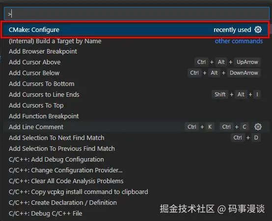 Ctrl+Shift+P)输入并执行CMake: Configure命令