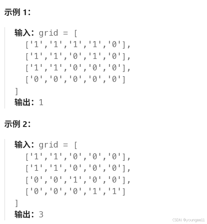 由 1 和 0组成的二维网格,计算网格中岛屿的数量。