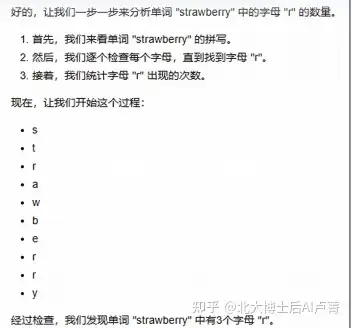 strawberry 中有几个字母 r ?"大模型通常会错误地回答"单词 strawberry 中有两个字母 r"。