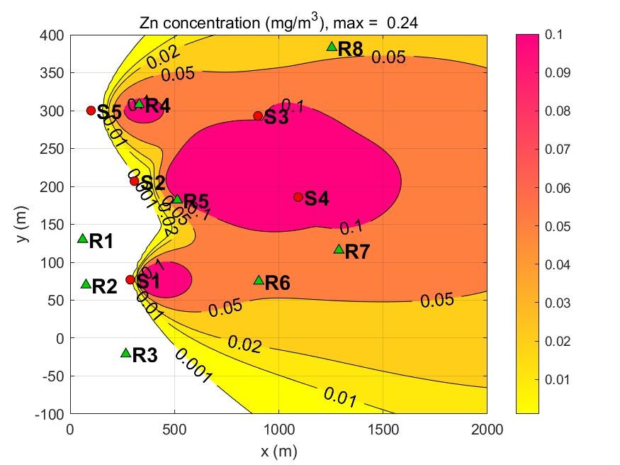 跑出来的效果应该是这样的:在排放源下风向形成一条"烟羽",浓度随着距离先升高后降低,高空出现最大浓度点。想要更装逼的话,可以加上windbarb图显示风向,或者用透明度映射浓度值。
