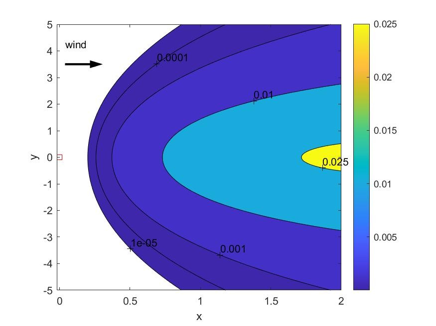 C = Q./(2*pi*u*sigma_y.*sigma_z) .* exp(-0.5*(Y./sigma_y).^2) ...