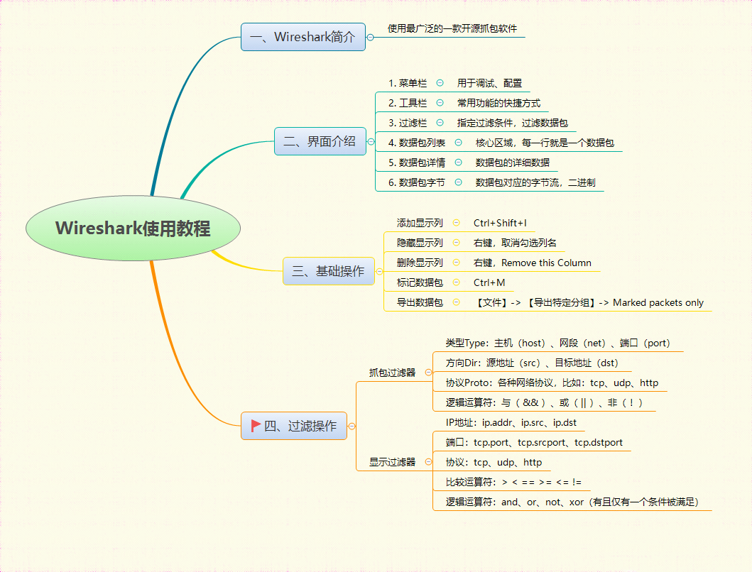 Wireshark提供了两个过滤器:抓包过滤器 和 显示过滤器。两个过滤器的过滤思路不同。
