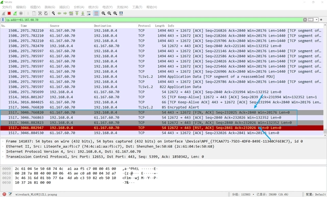 Wireshark抓包分析TCP四次挥手