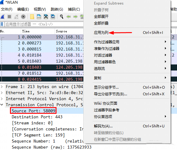 选中需要标记的数据包,右键选择最上面的「标记/取消标记」。