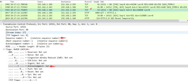 图中可以看到wireshark截获到了三次握手的三个数据包。第四个包才是HTTP的, 这说明HTTP的确是使用TCP建立连接的。