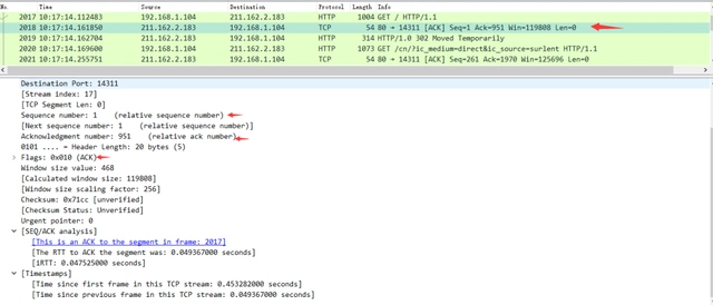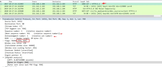 Seq: 1Ack: 951: 说明现在服务端共收到951字节数据