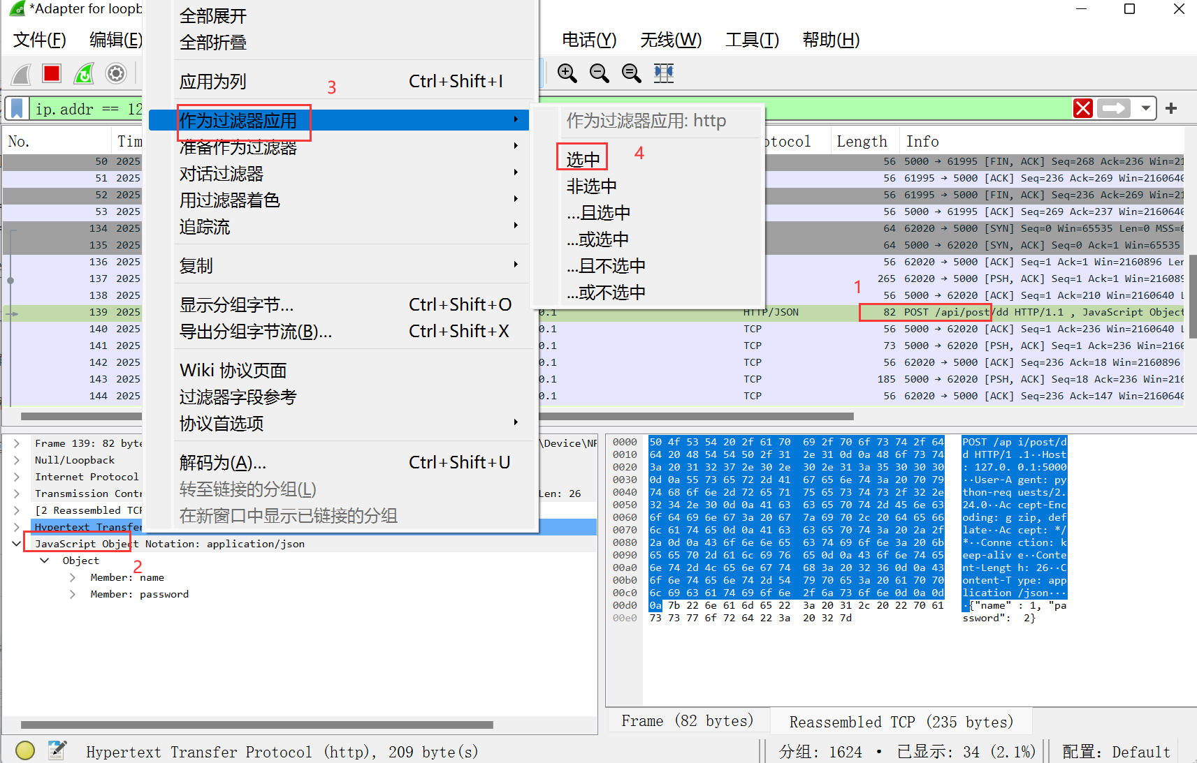 wireshark抓包获取访问指定服务端数据包