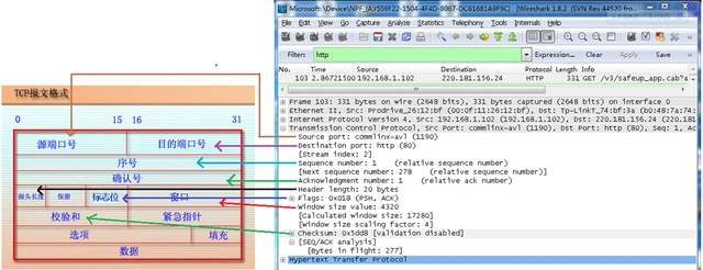 从下图可以看到wireshark捕获到的TCP包中的每个字段。