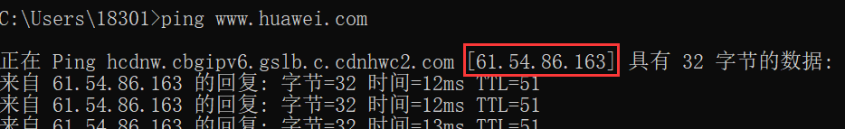 ping www.huawei.com获取IP。
