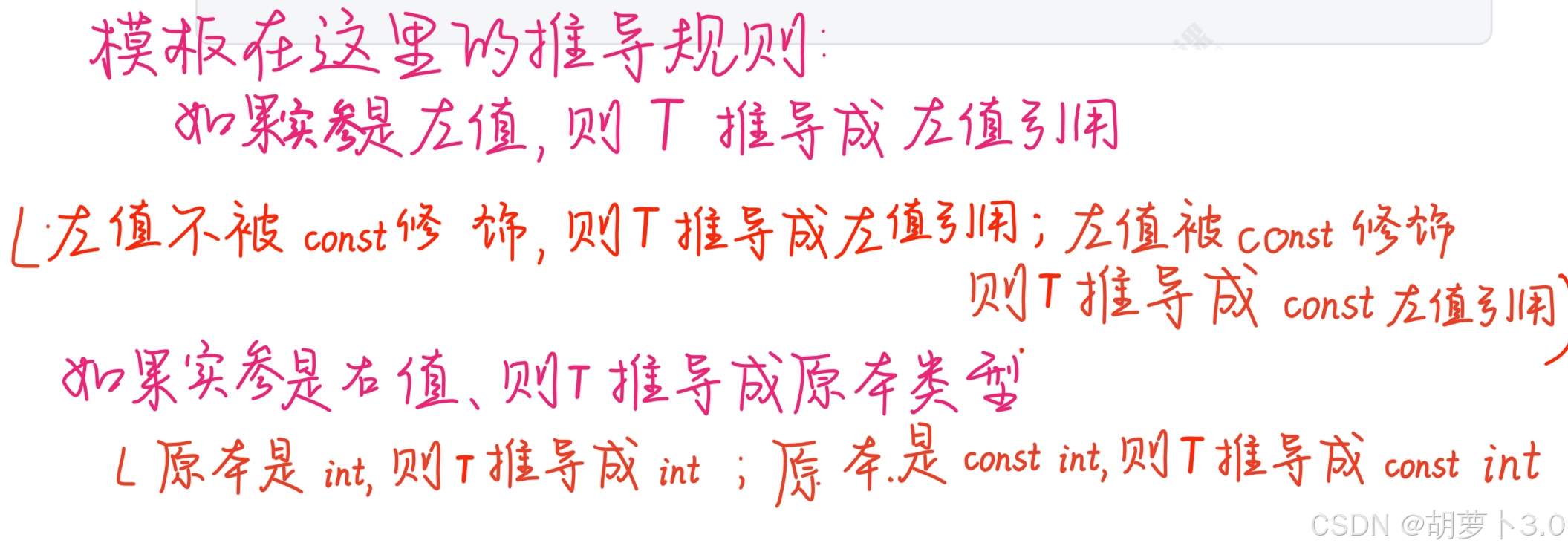 ok,在这里我们就要先知道一下模板参数是右值引用时的推导规则: