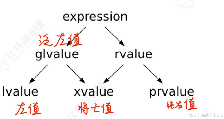 C++11以后,进一步对类型进行了划分,右值被划分成: