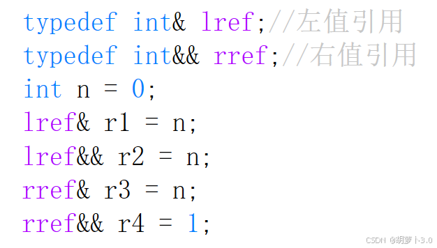 但是在C++中我们是不能直接定义引用的引用,如int& && r=i;这样写会直接报错