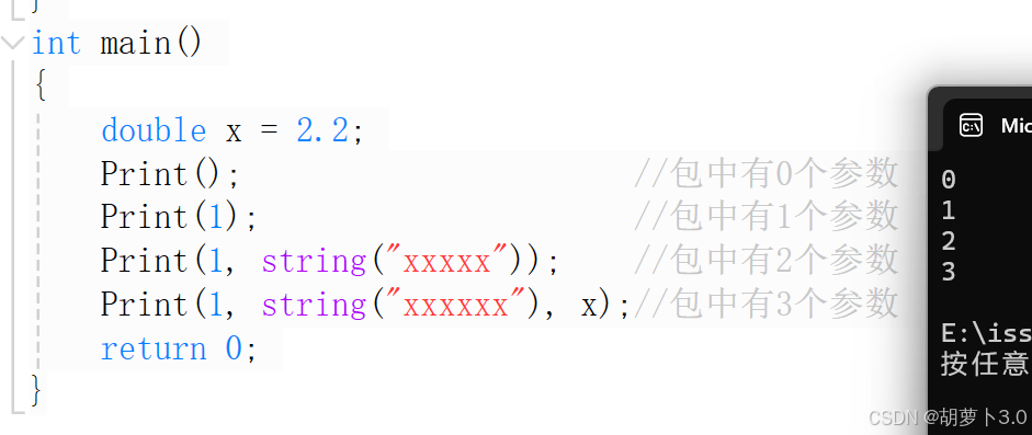 Print(1, string("xxxxxx"), x);//包中有3个参数