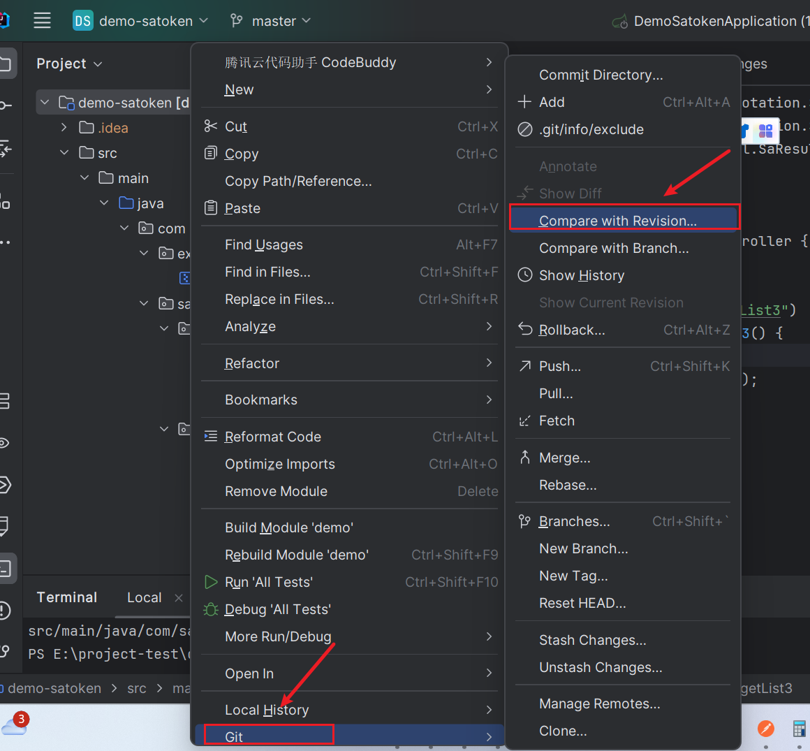 (1) idea 中 选择项目-》右键-》git-》git comare with Revison