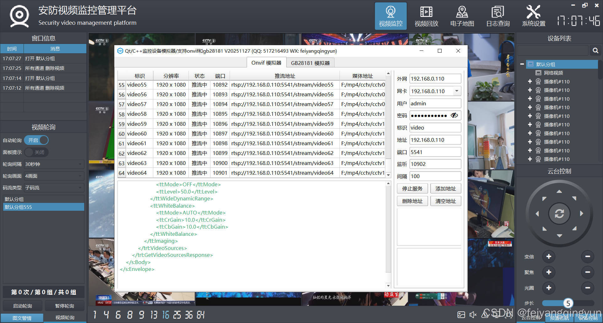 - 无论是onvif设备模拟组件还是28181设备模拟组件,全部原创底层协议解析,纯Qt实现,跨任意平台。
