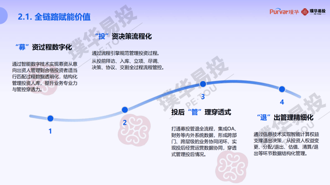 官雯详细阐释了数字化平台如何对"募投管退"全业务链路进行价值重塑: