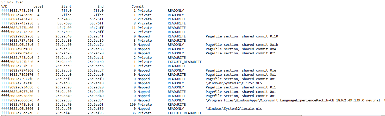 现在 windbg 默认查看的是Windows全局的内存,如果我们要查看指定进程地址的VAD,那么首先要切换到该进程的 VAD 才行。