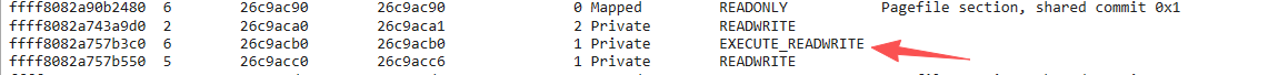 我们直接用瞪眼法,发现一块VAD是可写可执行的,并且页数只有1,也就是4kb大小,这非常符合shellcode的情形。