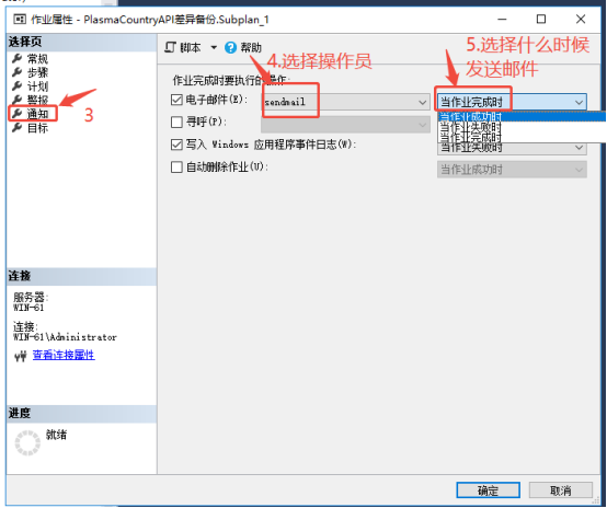 12.在作业中加入邮件通知,选择好新建的操作员。