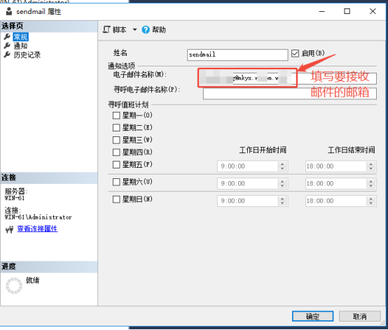 11.设置代理人,sql server代理》操作员》新建操作员。