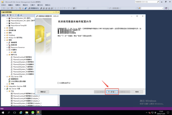 7.默认选择通过执行以下任务来安装数据库邮件,点击下一步。