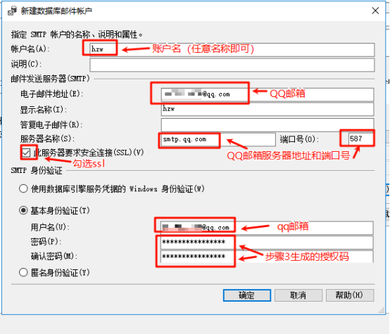 使用QQ邮箱的SMTP服务器设置SSMS邮箱发送。