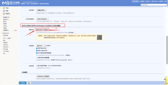 3.选择账号,拉下去找到POP3/IMAP/SMTP/Exchange/CardDAV/CalDAV服务,开启POP3/IMAP/SMTP/Exchange/CardDAV/CalDAV服务。