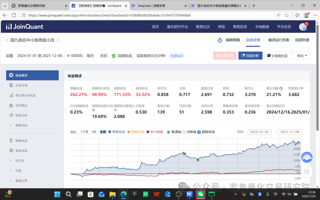 小市值因子失效风险:策略高度依赖小盘股的超额收益。如果市场风格彻底转向大盘蓝筹(如"漂亮50"行情),或监管政策导致微盘股流动性枯竭、估值体系重构,策略可能长期表现不佳。