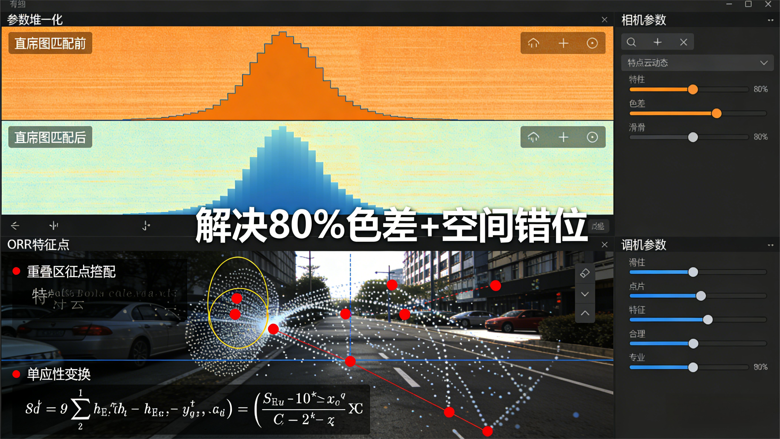 关键价值:修正相机安装的微小偏移(如角度倾斜、位置偏差),从空间上消除重影;