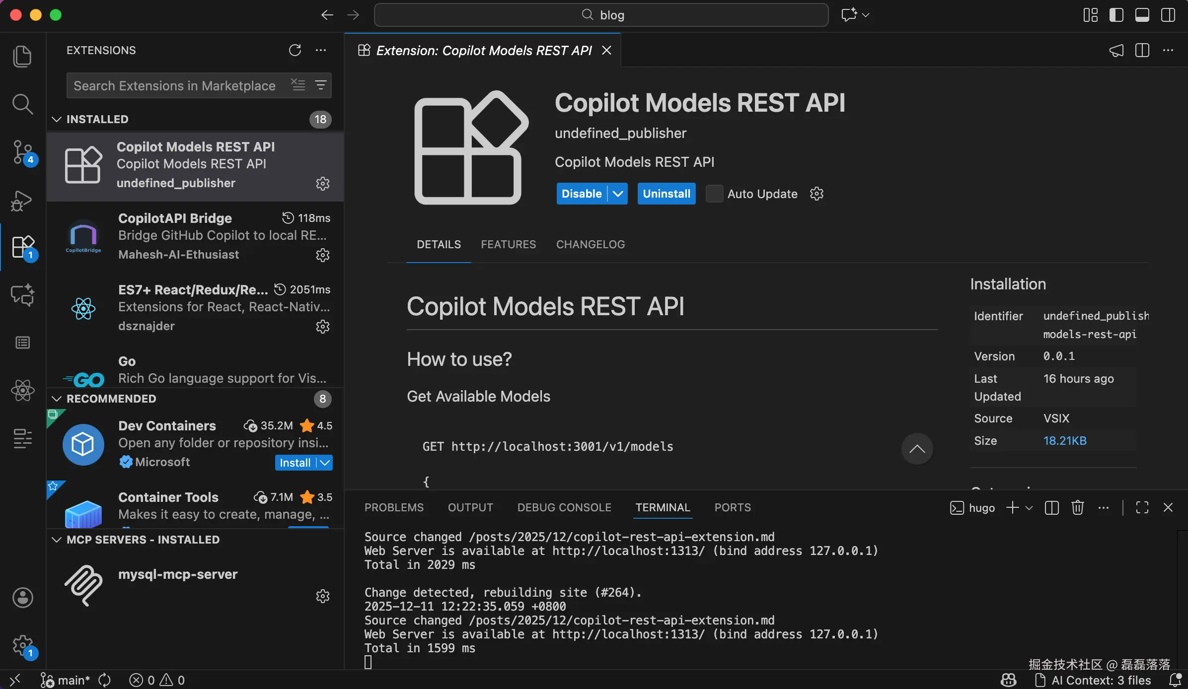 今天,我们就将共同探索这个实践:如何通过编写一个 VS Code 扩展,将 Copilot 支持的大模型转化为可灵活调用的 API 服务。