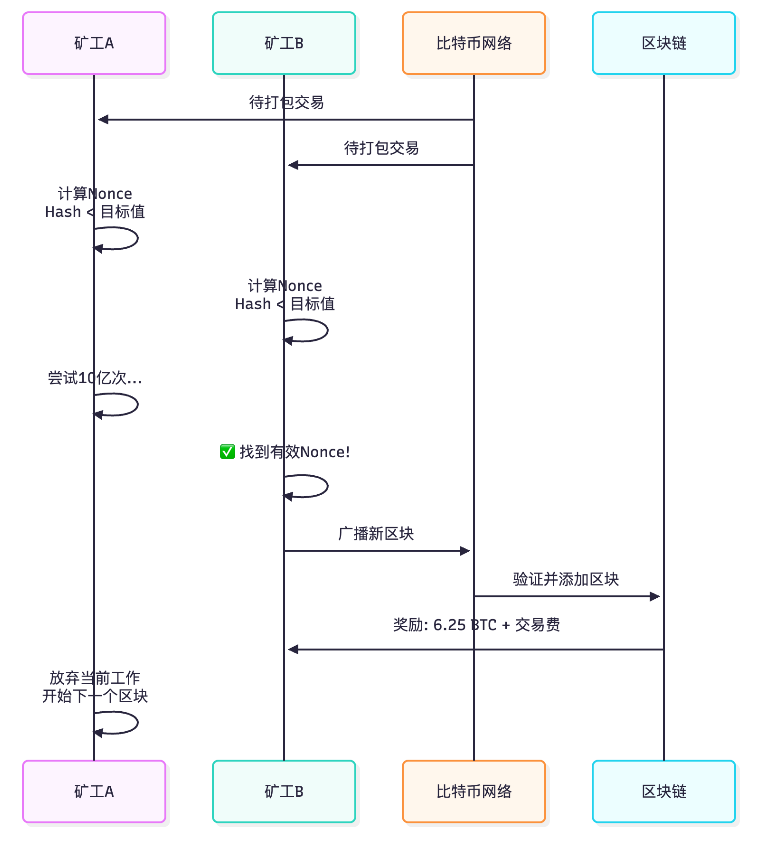 目标: 找到一个 Nonce,使得区块哈希小于目标值