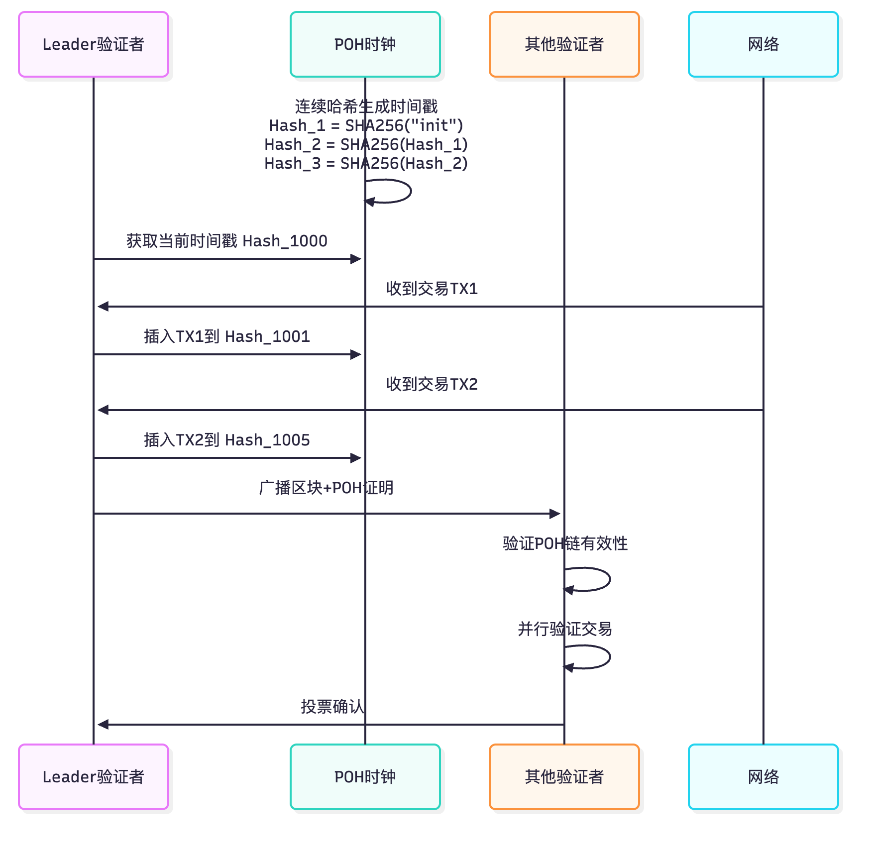 Solana 独创的共识机制,通过"时间戳"优化共识效率: