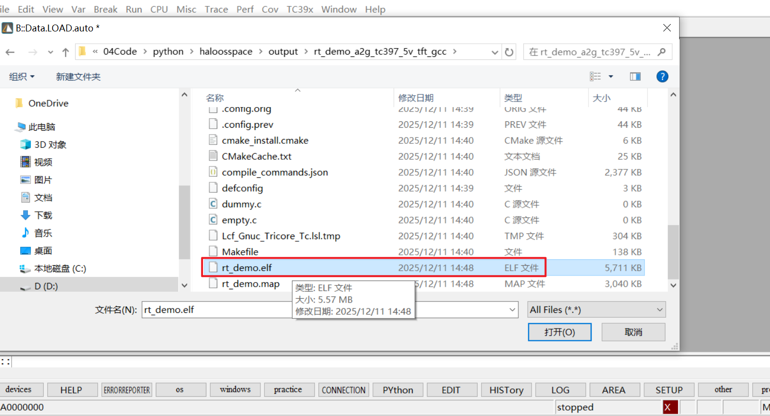 - 选择目录:haloosspace\apps\rt_demo\system_cfg\a2g_tc397_5v_tft