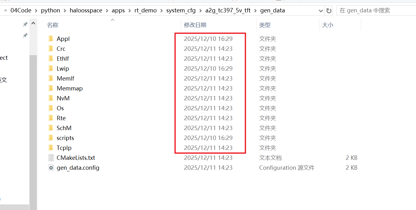 - 查看haloosspace\apps\rt_demo\system_cfg\a2g_tc397_5v_tft\gen_data下的生成时间,所选的模块如果是最近的则表明生成成功。