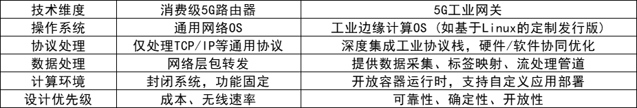 从技术角度看,5G工业边缘网关与消费级路由器的分水岭体现在三个层面:硬件平台、协议处理中间件和运行时环境。