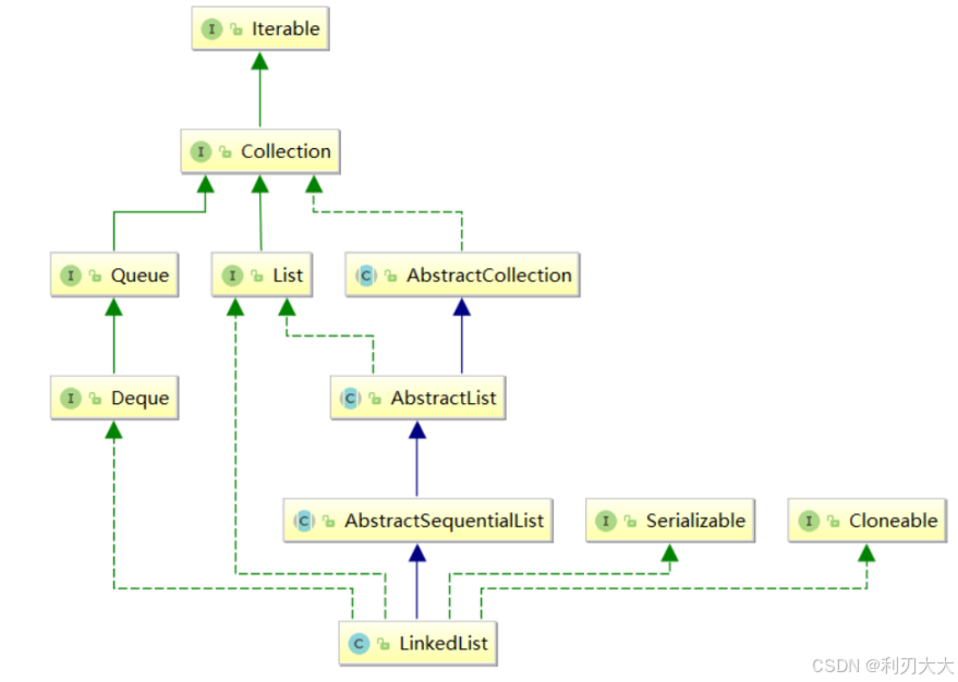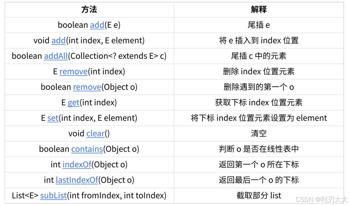 对于 LinkedList 来说,它的接口和 ArrayList 的接口基本是一样的,只是逻辑和物理存储上面的区别,所以具体接口可以参考 ArrayList 的笔记或者直接翻看官方文档!