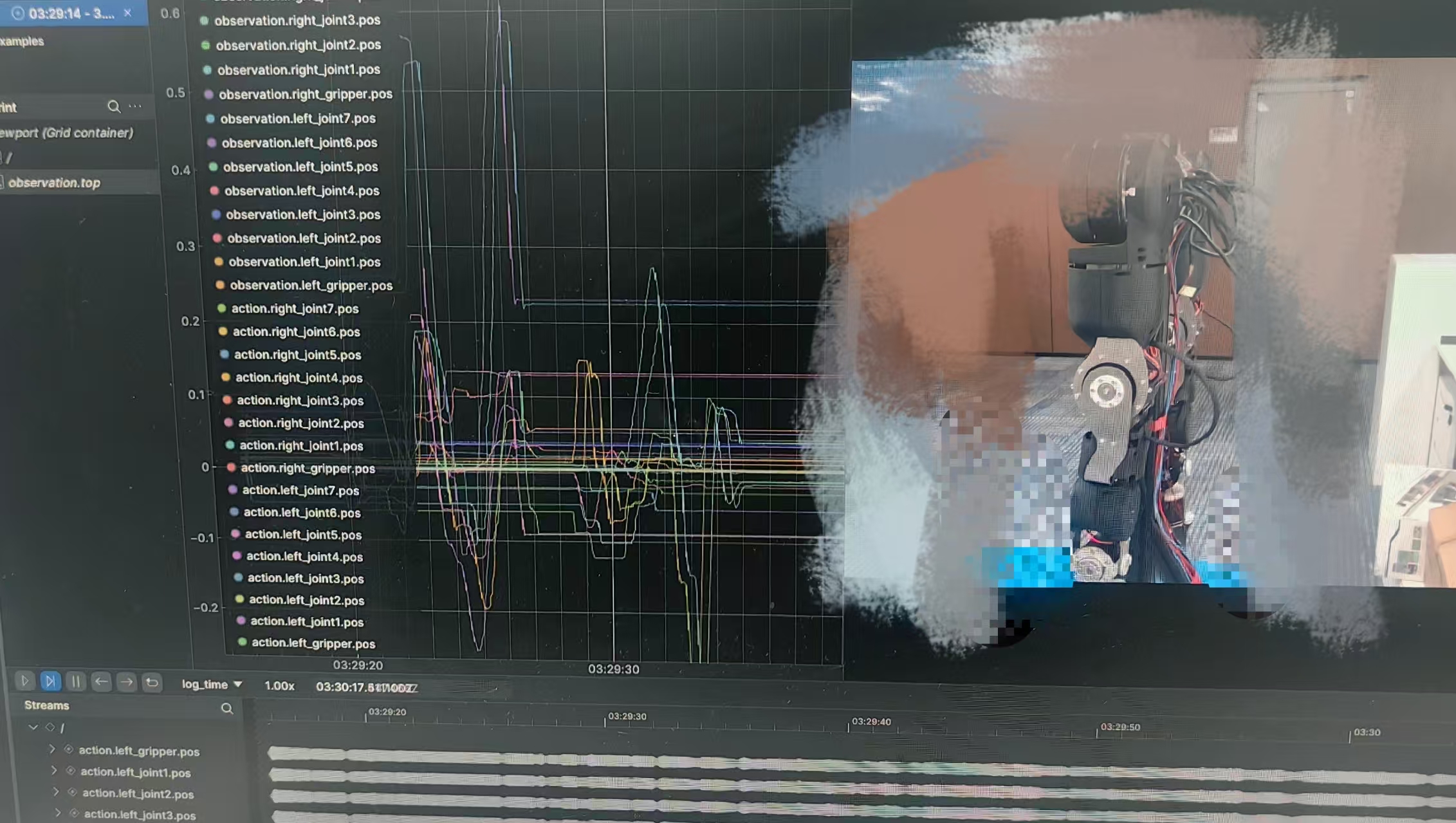 本项目将 OpenArm 双臂机械臂适配到 LeRobot 框架,实现了通过 LeRobot 进行遥操作和 VLA 数据采集的功能。
