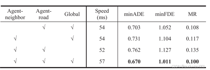 **(a)minADE:**计算与真实轨迹最接近的那条预测轨迹(在K个模态中)的平均点对点位移误差,反映多模态预测的整体精度。