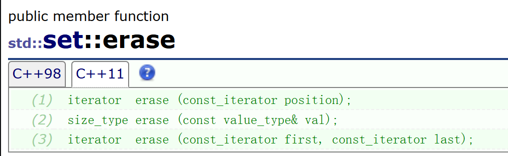 - 删除某个key值,观察其返回值是size_t类型,返回的是删除key值的个数,明明在set中key值只有一个或没有,这里要是想要返回的话直接返回bool值即可,何必返回删除这个key值的个数呢?这是为了后面的multiset做准备,因为multiset可以允许有多个相同的key值,而set和mulitset的关联性很大,所以为了接口的统一性将这里的删除值为key的erase的操作的返回值设置为了返回删除key值的个数,在set中当有这个key值的时候删除对应的节点成功返回1,当没有这个key值的时候删除对应节点失败返回0