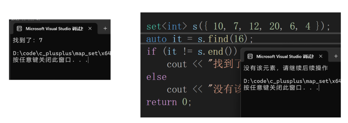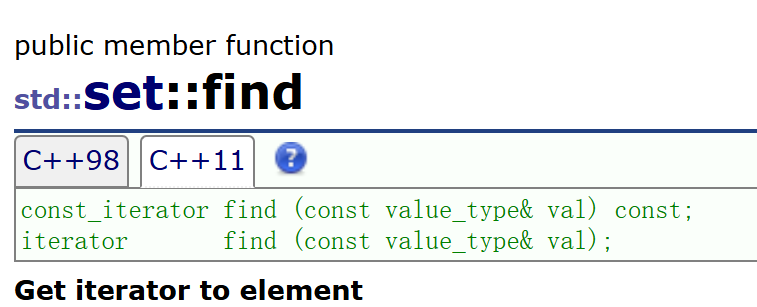 - 库里也有find,为什么set还要提供一个find函数呢?因为库里的是给出区间遍历查找,时间复杂度为O(N),set底层是一个平衡二叉搜索树,所以成员函数find的查找效率高为O(logN)