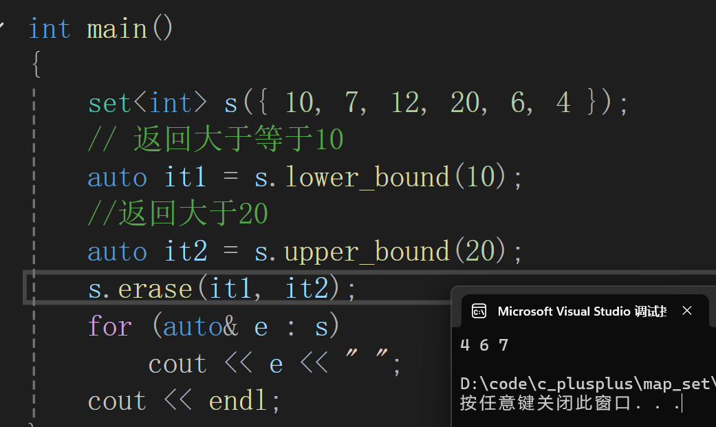 - 在set的某一个迭代器位置插入val,迭代器位置并不是强制插入到该迭代器位置,我们传入的这个迭代器位置对于编译器来说只是一个建议位置,实际数据插入后还是根据其原有的二叉搜索树的逻辑进行调整