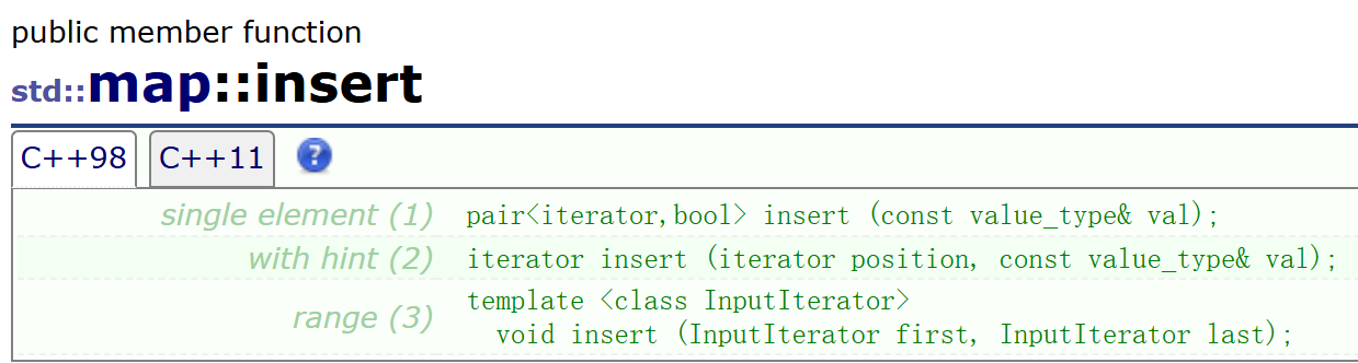 无论插入成功还是失败,最终都会返回一个pair的键值对<iterator, bool>,pair的first都是指向key的iterator