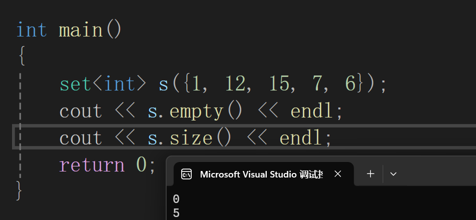 - count:返回key值对应的个数,返回值是size_t类型的,在set中key要么是1个要么是0个,这里的设计是为了和multiset保持接口的一致性,multiset允许多个key值存在,所以当myltiset调用count的时候可能key值对应的个数会有多个,为了set和multiset接口的统一性,我们给set也提供一个count接口,count接口在set中可以用于判空