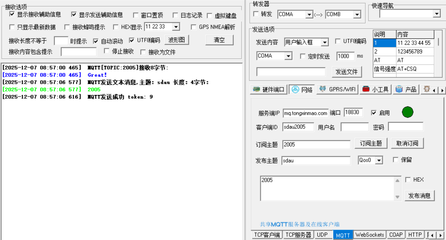 2.下载调试软件通信猫-Windows下全能调试助手_通信猫云平台资源-CSDN下载,安卓手机也可安装一个调试APP:MyMQTT2.3.3_通信猫云平台资源-CSDN下载。